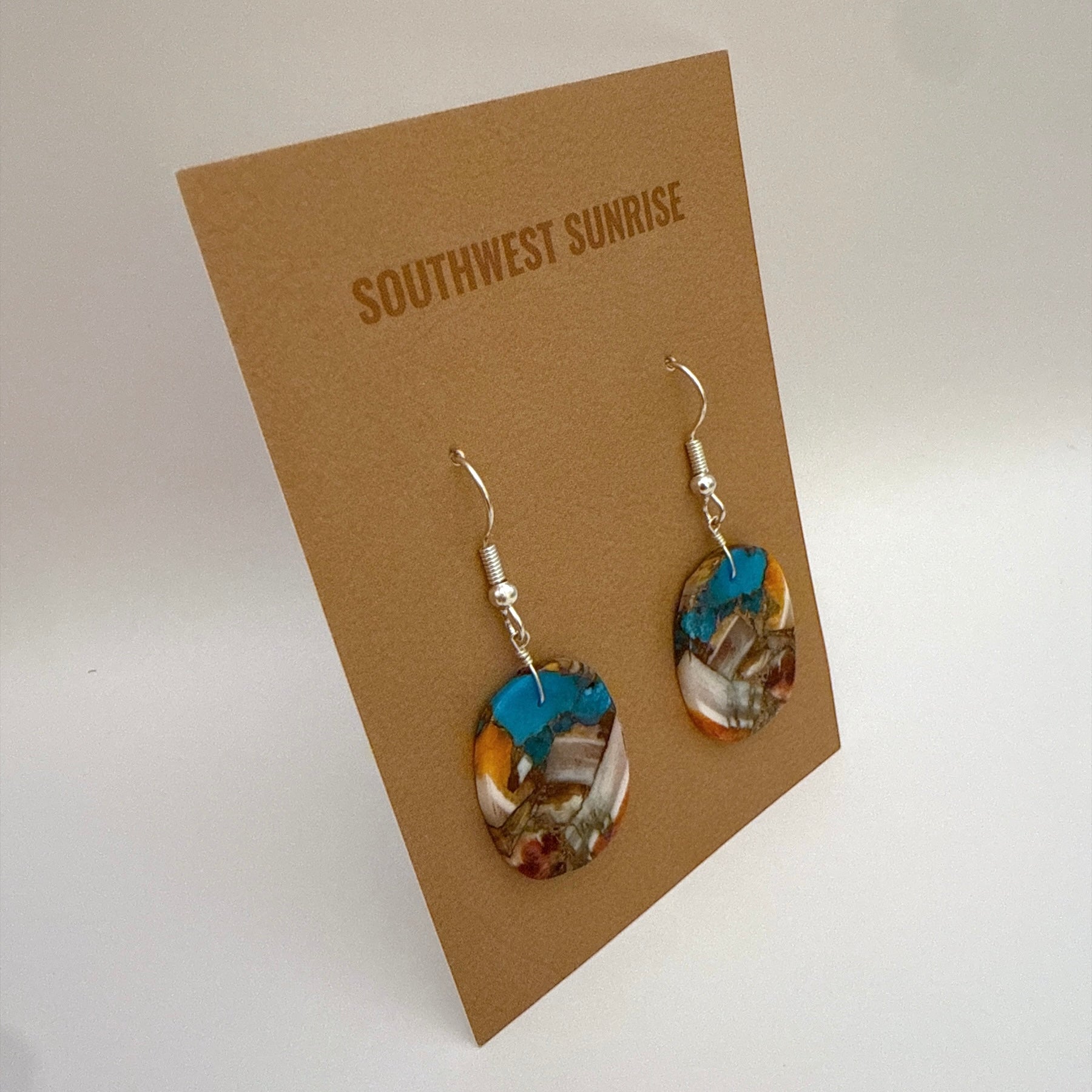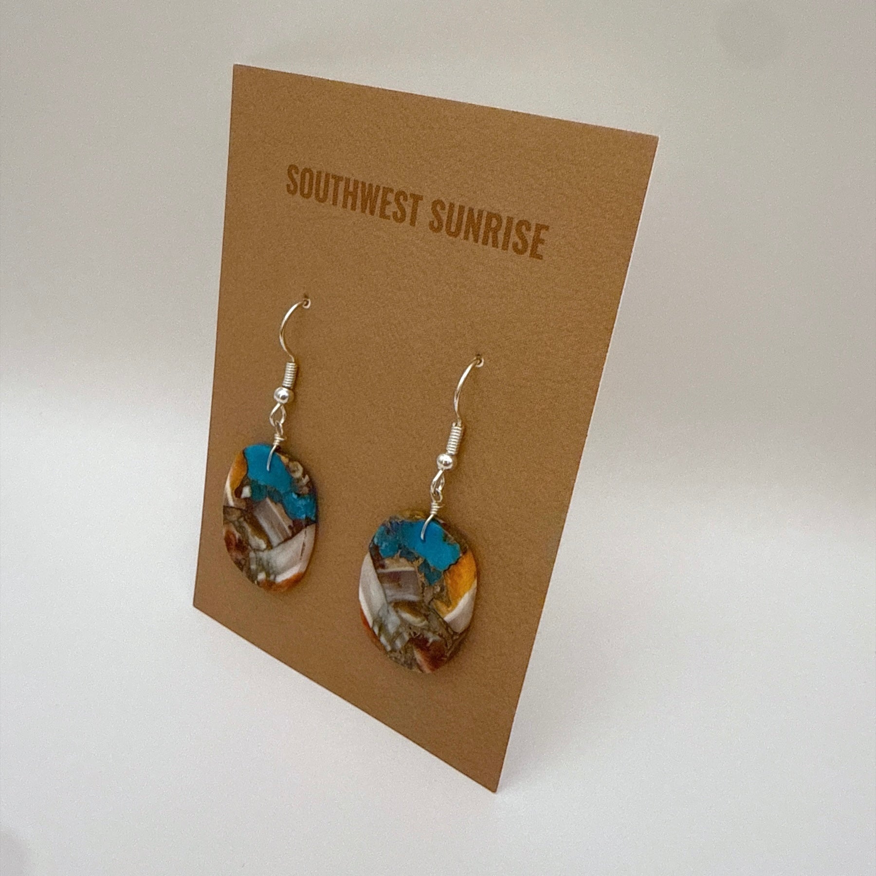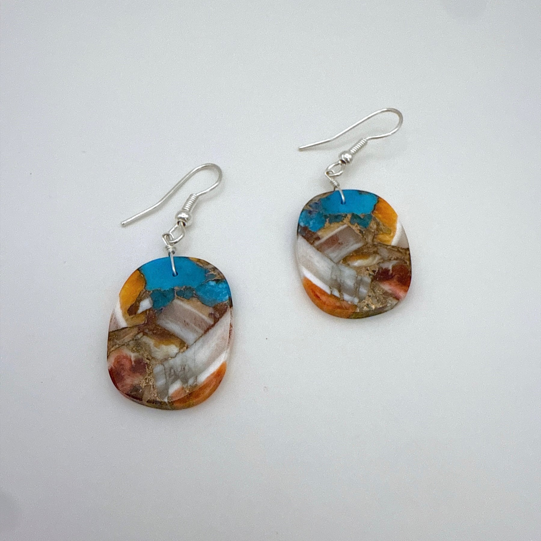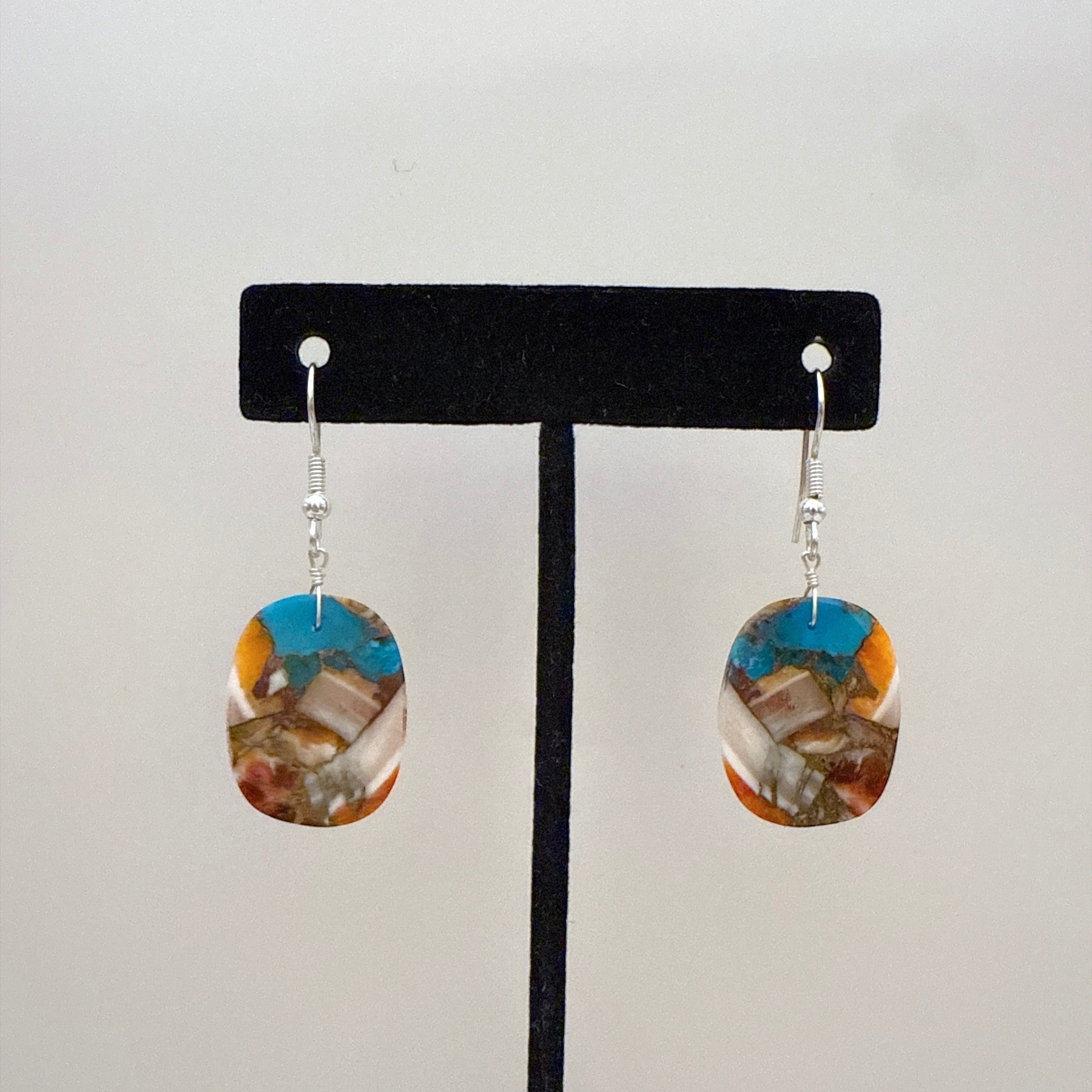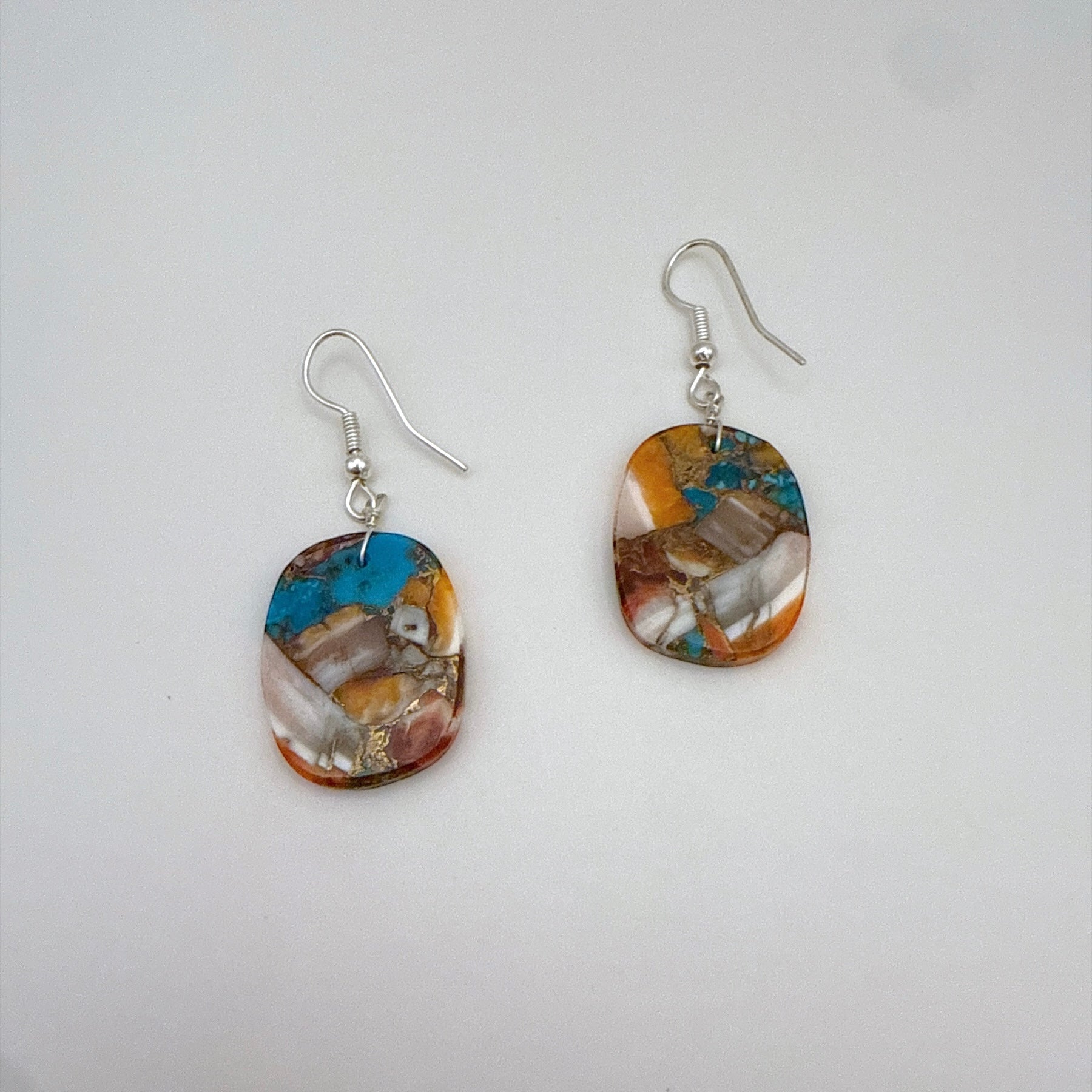 ナバホ族アーティスト、ジェイムソン・ピートによるモハベターコイズスラブピアスです。丸みのあるモハベターコイズスラブにシルバー925のフックを組み合わせ、鮮やかで使いやすいデザインに仕上げています。軽量で普段使いにもコーデのアクセントにも最適なアイテムです。