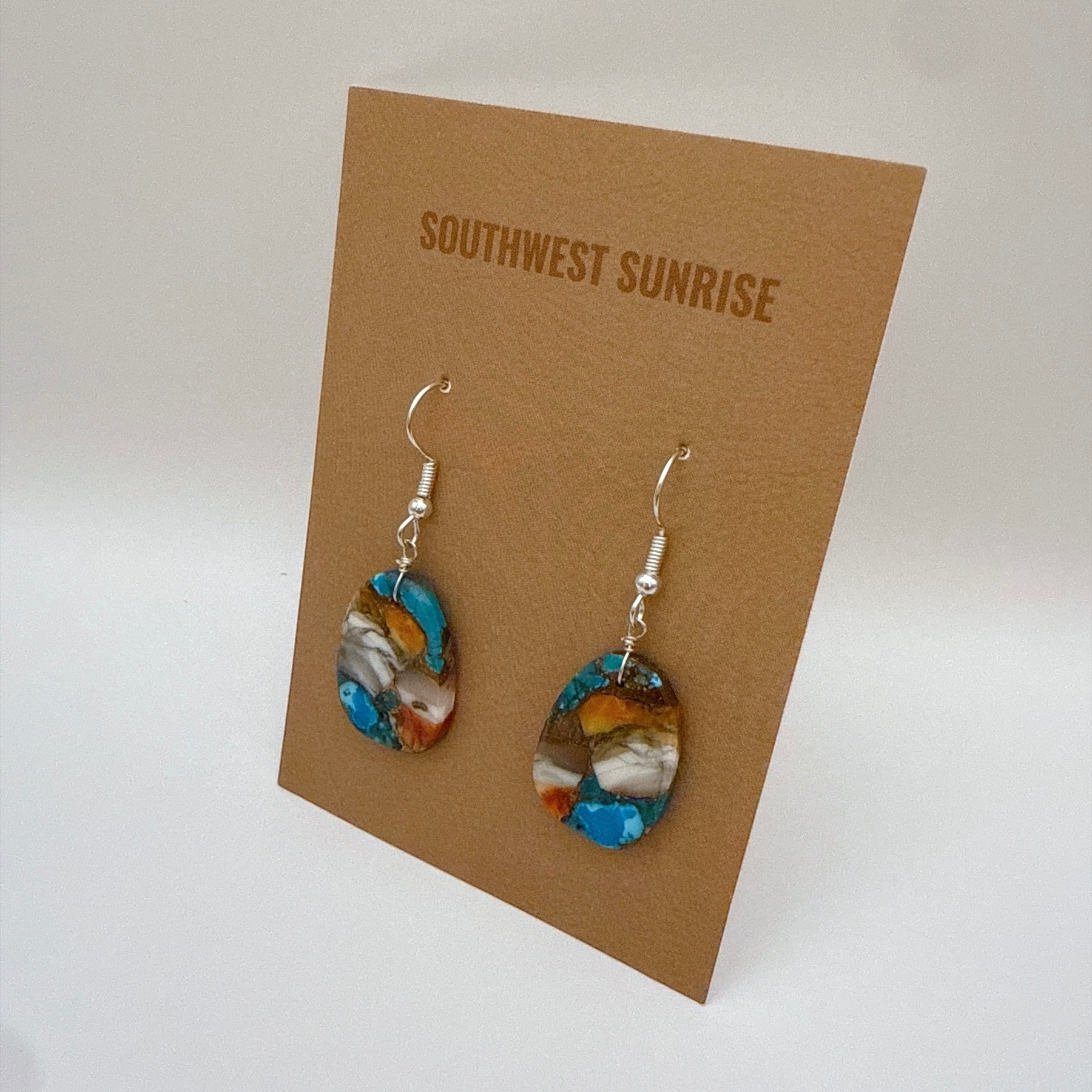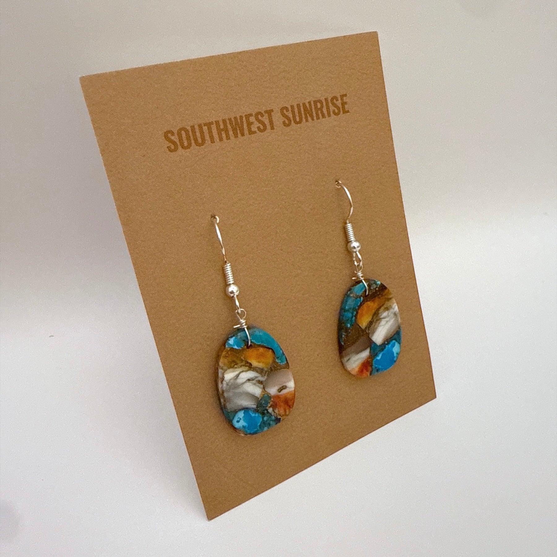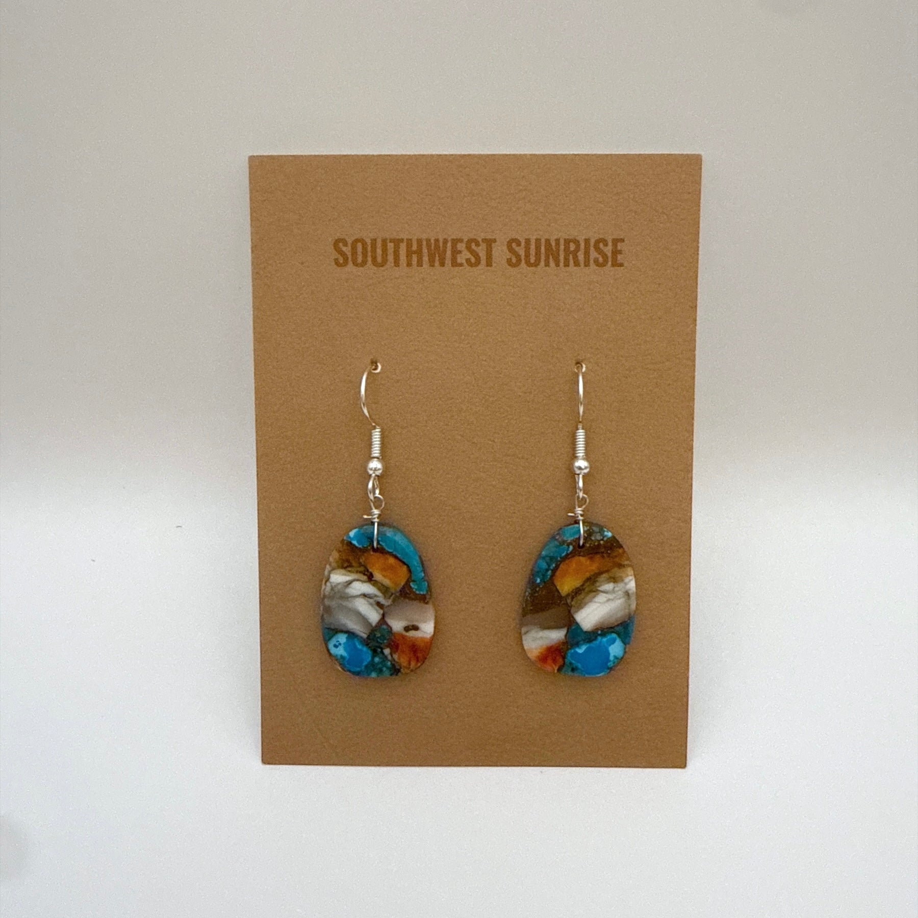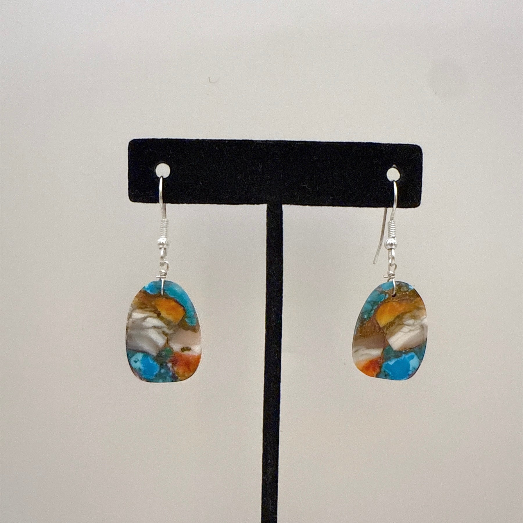 ナバホ族アーティスト、ジェイムソン・ピートによるモハベターコイズスラブピアスです。丸みのあるモハベターコイズスラブにシルバー925のフックを合わせ、鮮やかで使いやすいデザインに仕上がっています。軽量で普段使いにもコーデのアクセントにも最適なアイテムです。