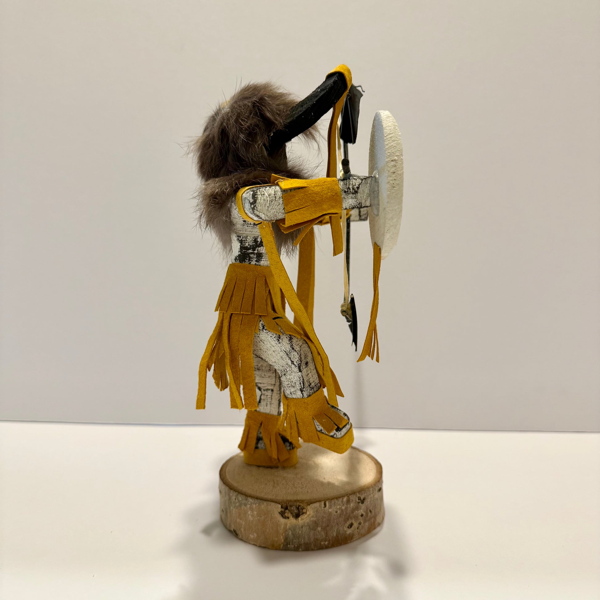 儀式の踊り手とは異なり、バッファローウォリアーは決意と生存力を体現する存在です。丁寧に作られたこの作品は、忍耐と文化的象徴を表現する印象的な一品です。