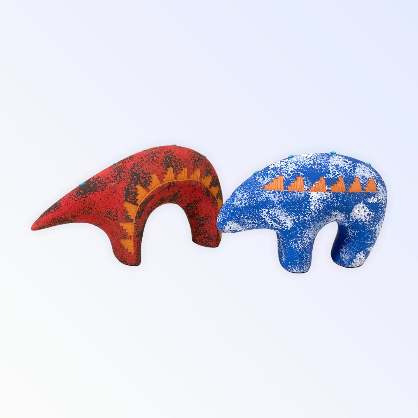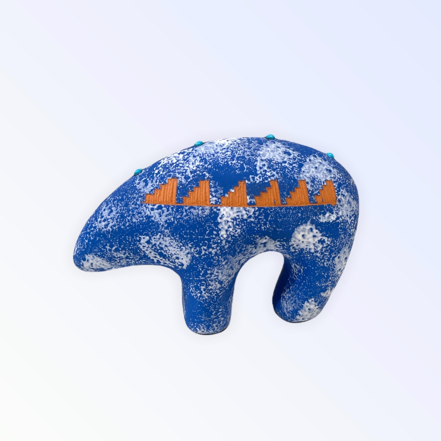 Navajo Red Clay Bear Pottery with Turquoise -Blue