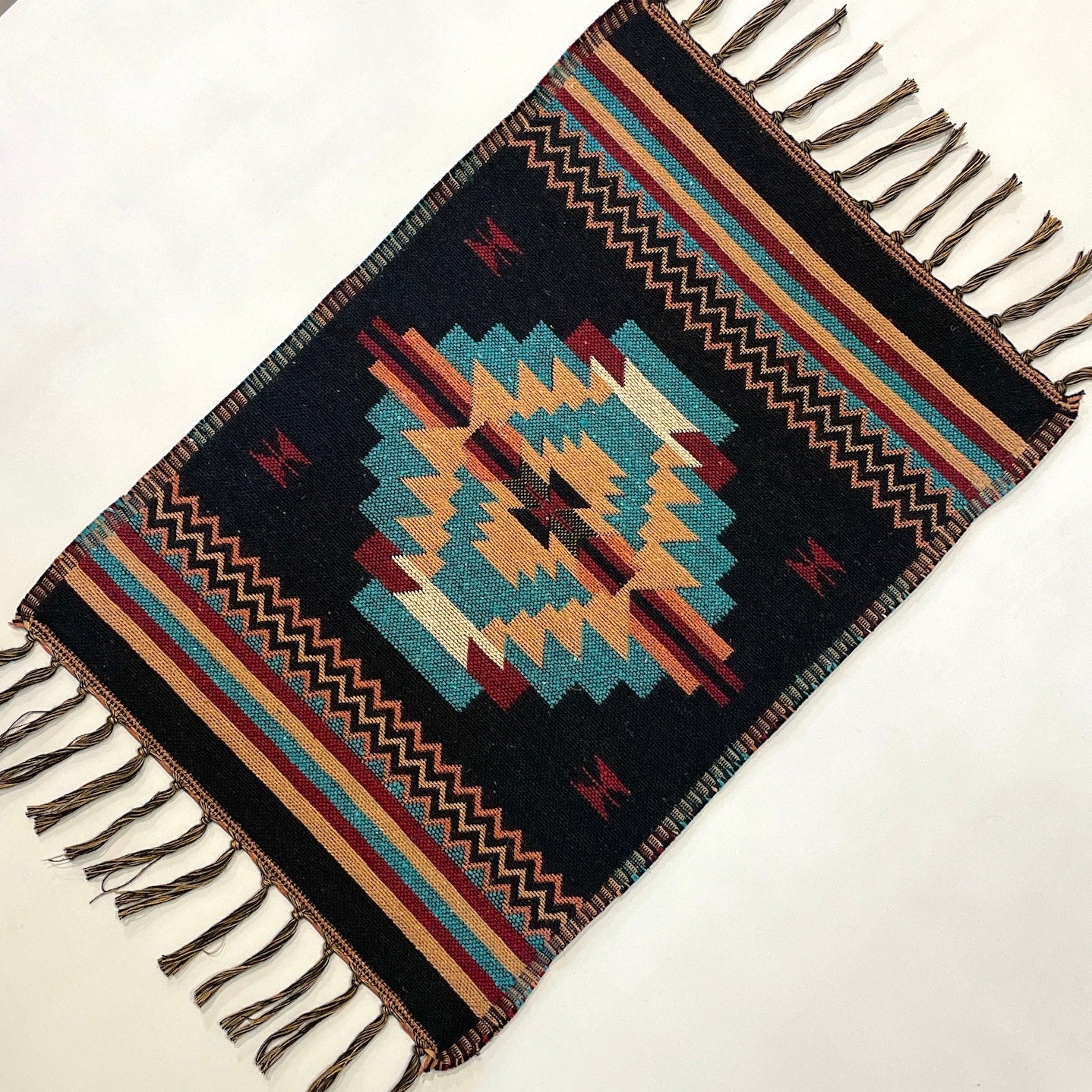 Southwest style cotton table mat featuring a striking geometric pattern, crafted from natural cotton fibers. Perfect for adding a touch of Southwestern charm to any table setting.