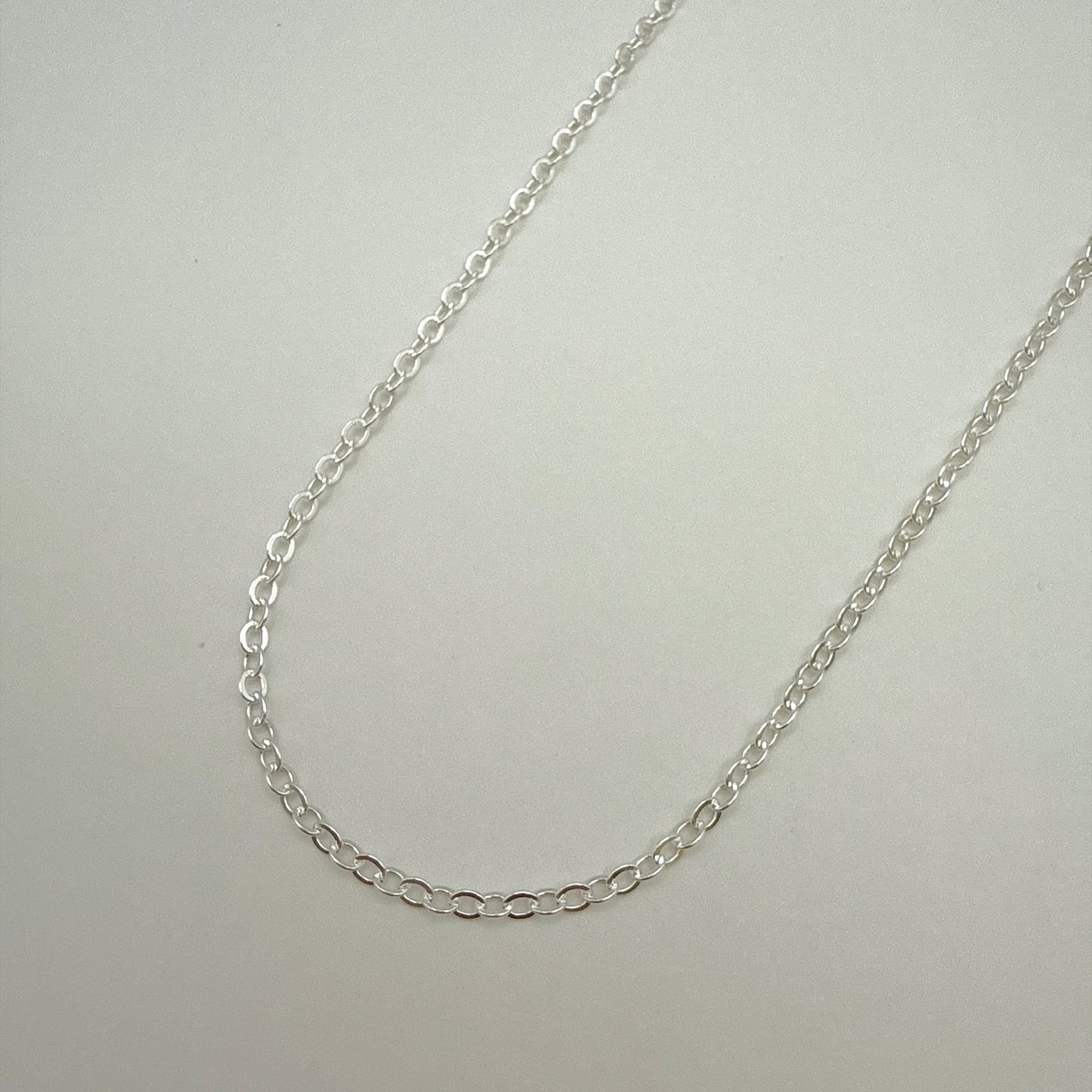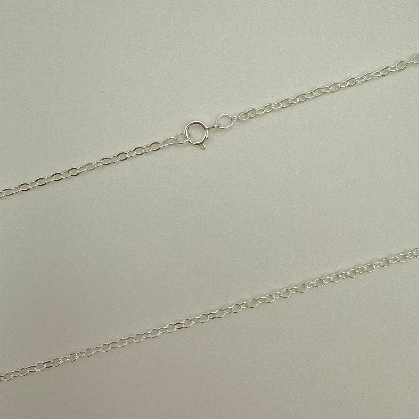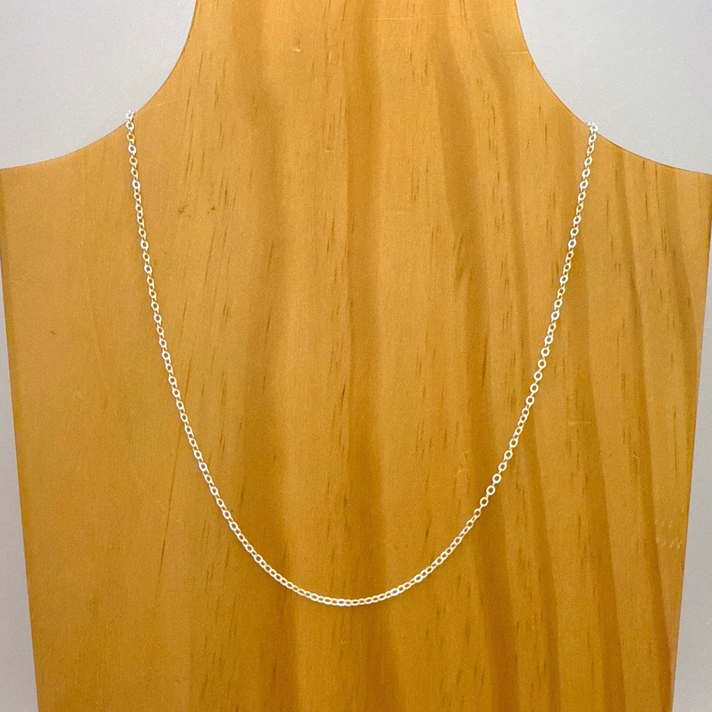 Sterling silver chain necklace. Machine made in Italy, this 18" chain has a delicate 1.8mm width, perfect for pendants or wearing alone. The durable lobster clasp ensures a secure fit, and its lightweight design offers all day comfort.