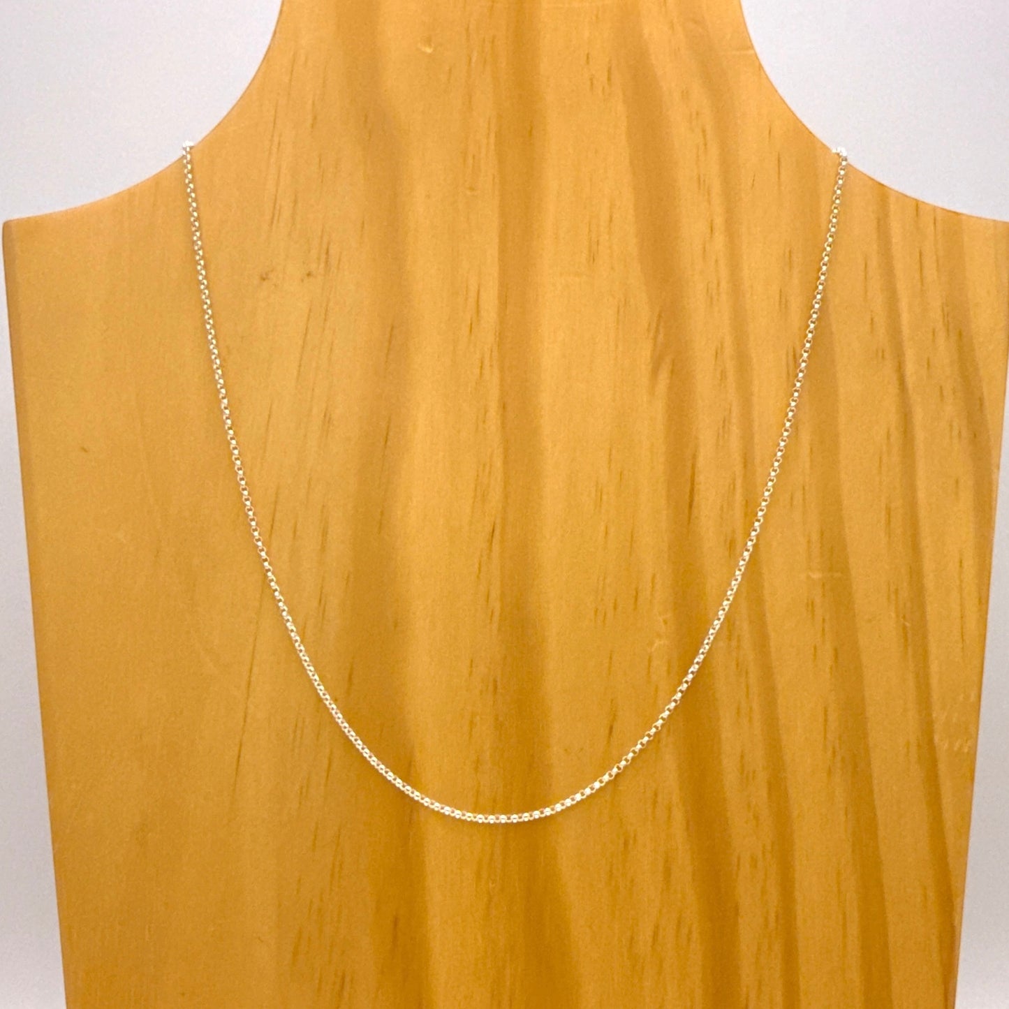 Sterling silver chain necklace. Machine made in Italy, this 18" chain has a delicate 1.8mm width, perfect for pendants or wearing alone. The durable lobster clasp ensures a secure fit, and its lightweight design offers all day comfort.